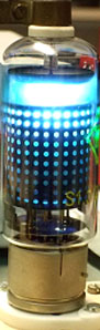 Dafür liegen so viele Vorschläge und Ideen vor, daß ich schon jetzt nicht mehr weiß, welche Variante nun eigentlich zuerst aufgebaut werden soll. Denn nachdem ich mir ein paar preiswerte Thyratrons (die Vorgänger der heutigen Thyristoren) zugelegt hatte, war ich von diesen gasgefüllten Steuerungs-Trioden begeistert, noch dazu, wo man sie als schön leuchtende Gleichrichter-Röhren einsetzen kann - also ein Hingucker bei dem geplanten „Monster-Röhren“-Triodenverstärker. MIt zwei RFT-Thyratrons S1,3-30dV habe ich bereits eine Testschaltung aufgebaut. Mit dieser Doppelweg-Gleichrichterschaltung, als Spannungsverdoppler aufgebaut, habe ich mit einer Trafo-Wechselspannung von 290V eine Gleichspannung am Lade-Elko von ca. 810V DC erhalten, und das mit zwei wunderschön violett leuchtenden Thyratrons. Dafür mußte ich mir allerdings einen speziellen Heiztrafo wickeln lassen, da es für 2 x 2,5V / 9A keinen handelsüblichen Trafo gibt. Doch es hat sich gelohnt.